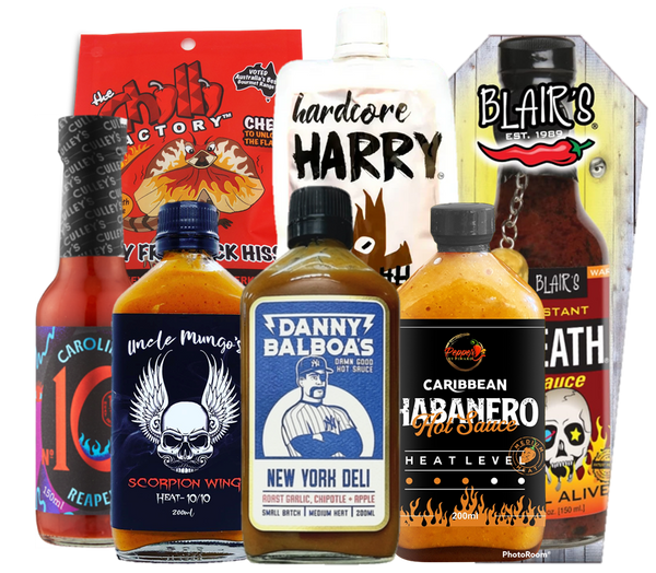 Seven of Blonde Chilli's favourite hot sauces and snacks rolled into one mouth-watering value pack!